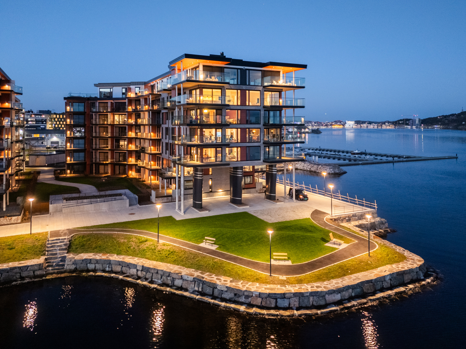 Som langsiktige eiere prioriterer vi nøkterne kvaliteter: gode planløsninger, forutsigbar drift og fellesløsninger som faktisk brukes. Ambisjonen er å skape et kystnært nabolag med plass til både ro og fellesskap – et sted hvor sjøen er en naturlig del av hverdagen.
